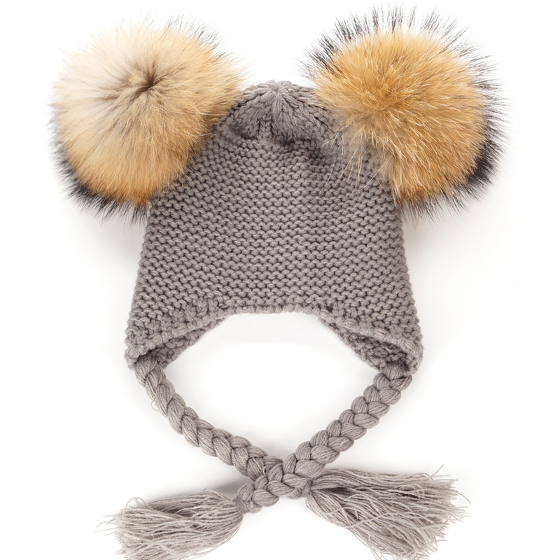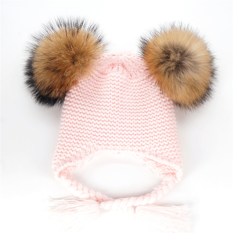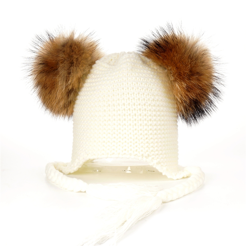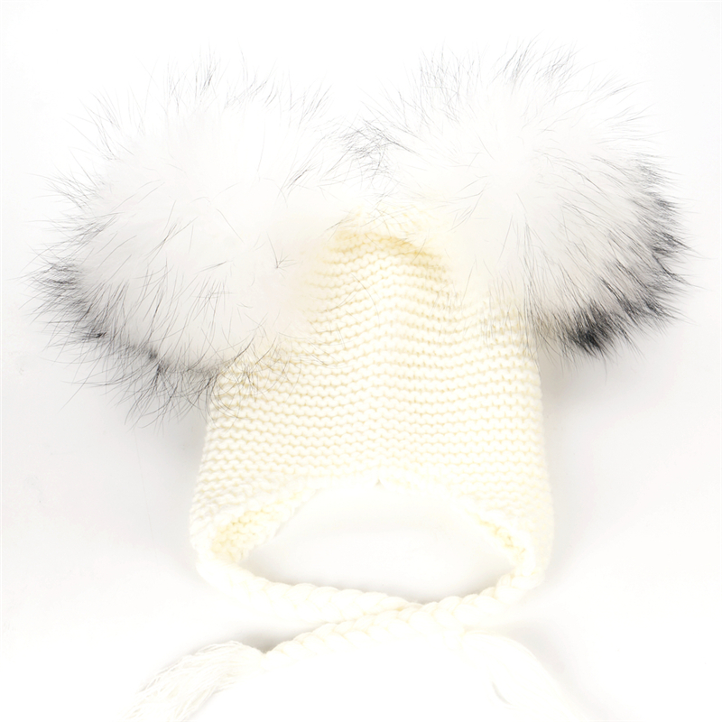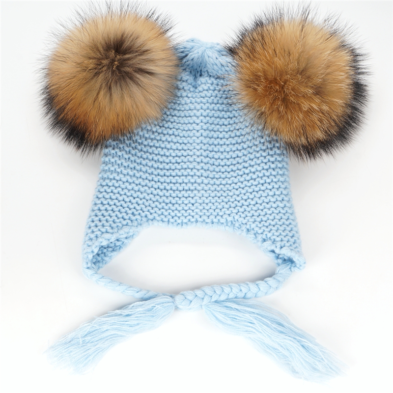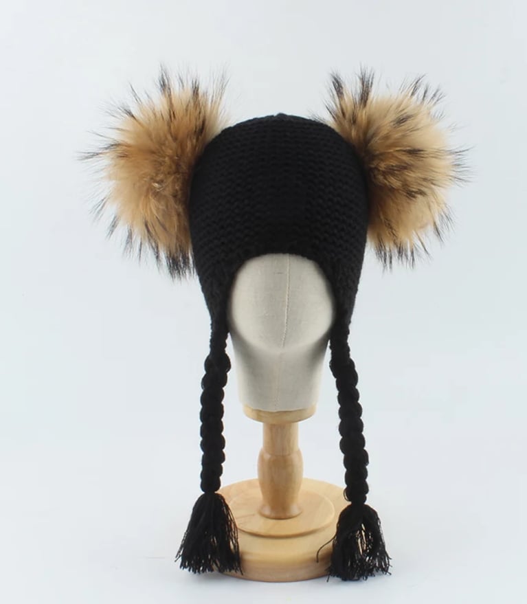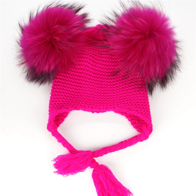 Czapka dziecięca z naturalnymi pomponami z jenota. Pompony są wypinane, co daje możliwość ręcznego prania czapki.