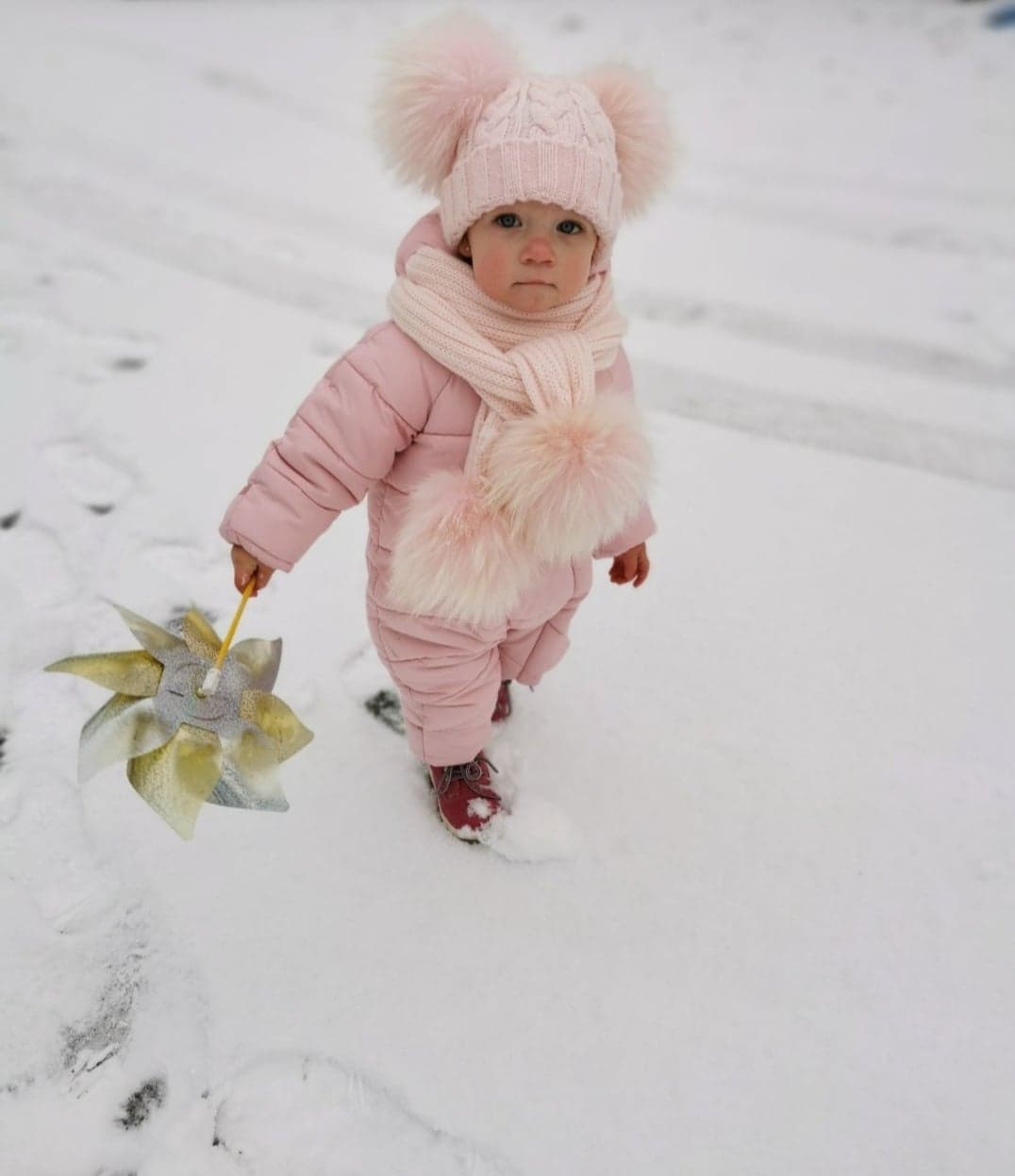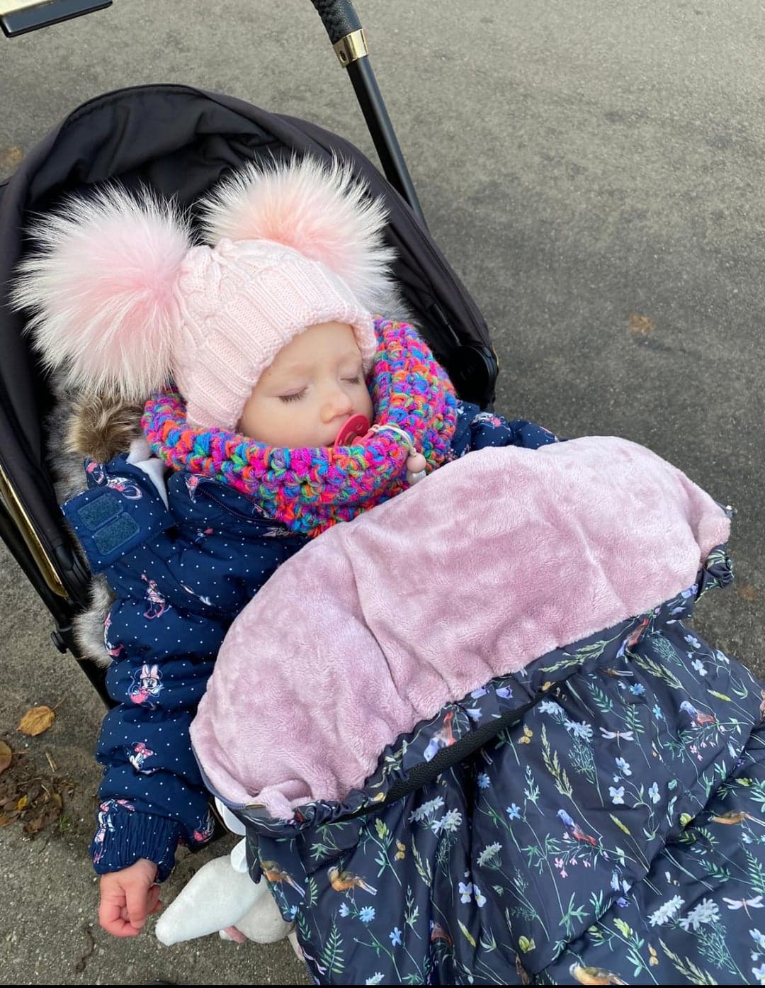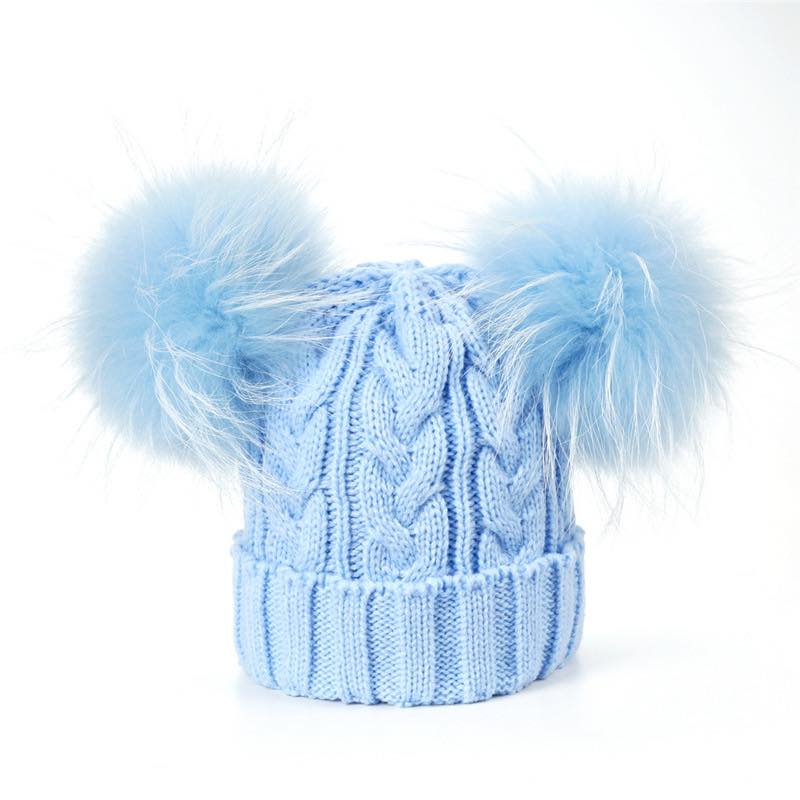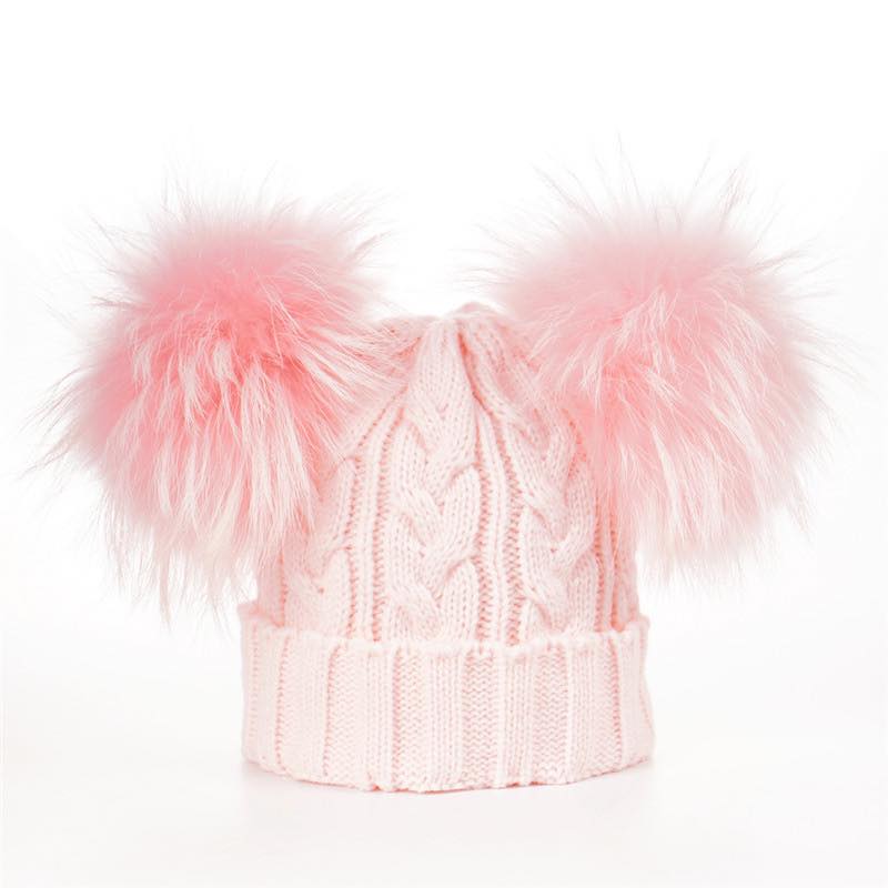 Dziecięca czapka zimowa z naturalnymi pomponami z jenota. Pompony duże gęste obfite. Czapka nie jest ocieplana od spodu polarem, ale mimo to jest bardzo ciepła