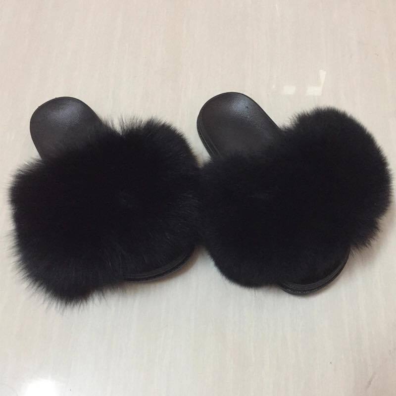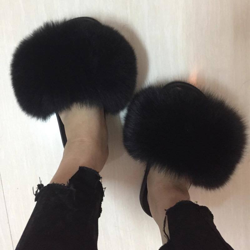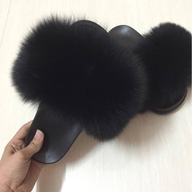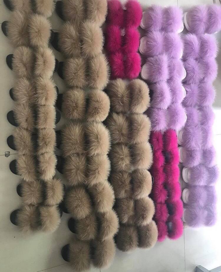 Klapki damskie z futrem z lisa naturalnego 36-45