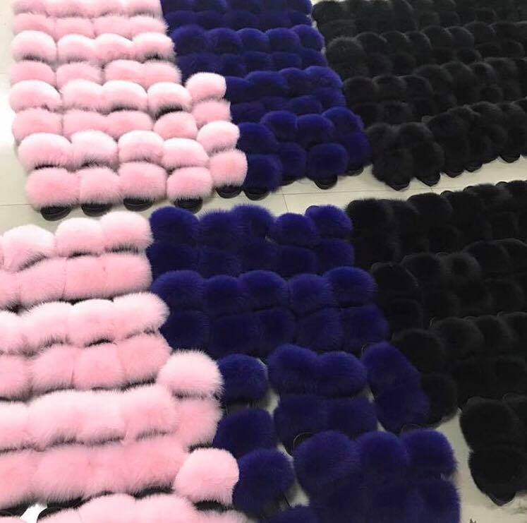 Klapki z naturalnym futrem z lisa wykonane z najwyższej jakości materiału. Dostępne w rozmiarach od 36-45.