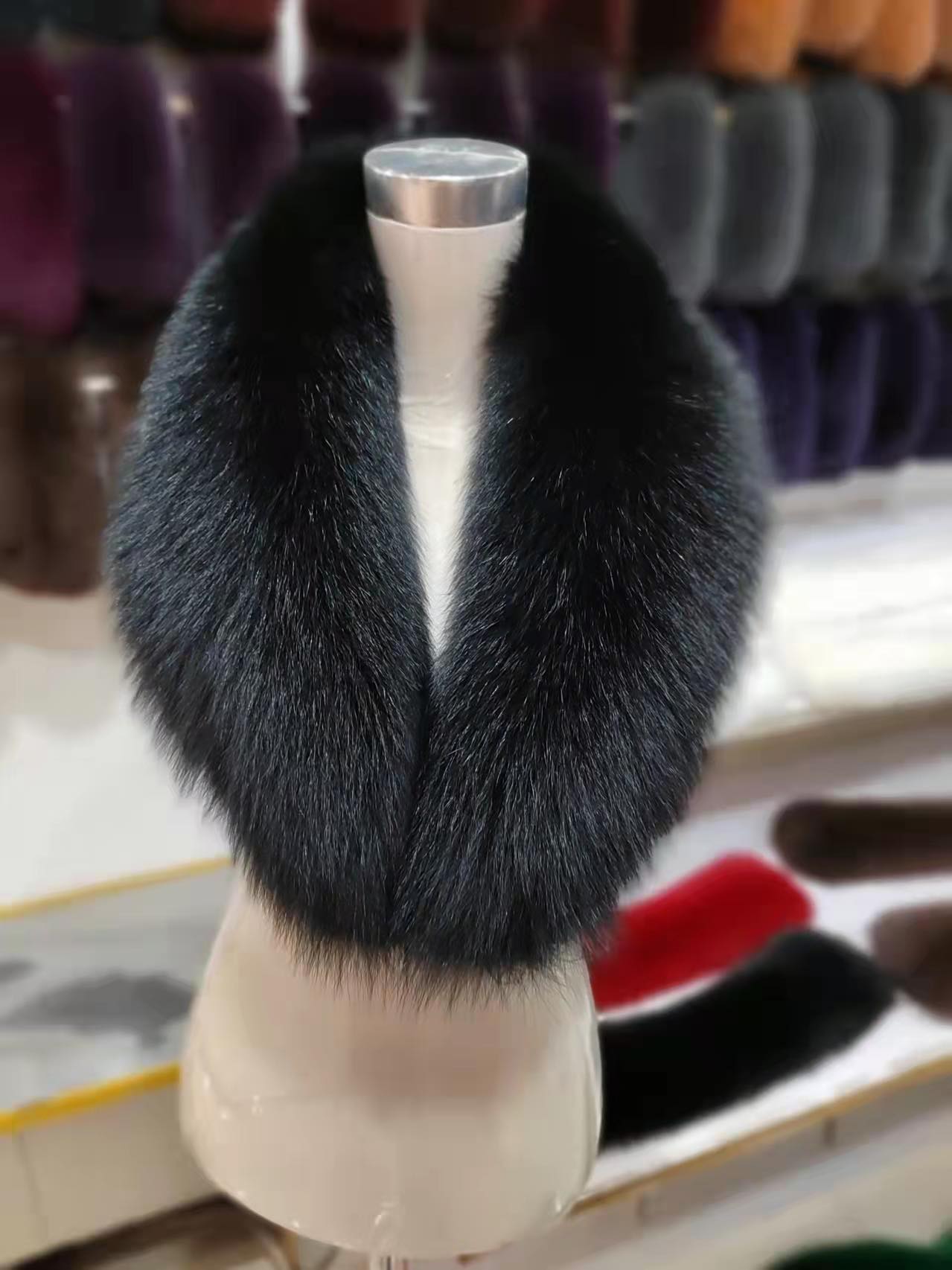 Kołnierz futrzany wykonany z futra lisa naturalnego w kolorze czarnym. Idealnie sprawdzi się do zimowego płaszcza jak i kurtki skórzanej a nawet swetra i żakietu.