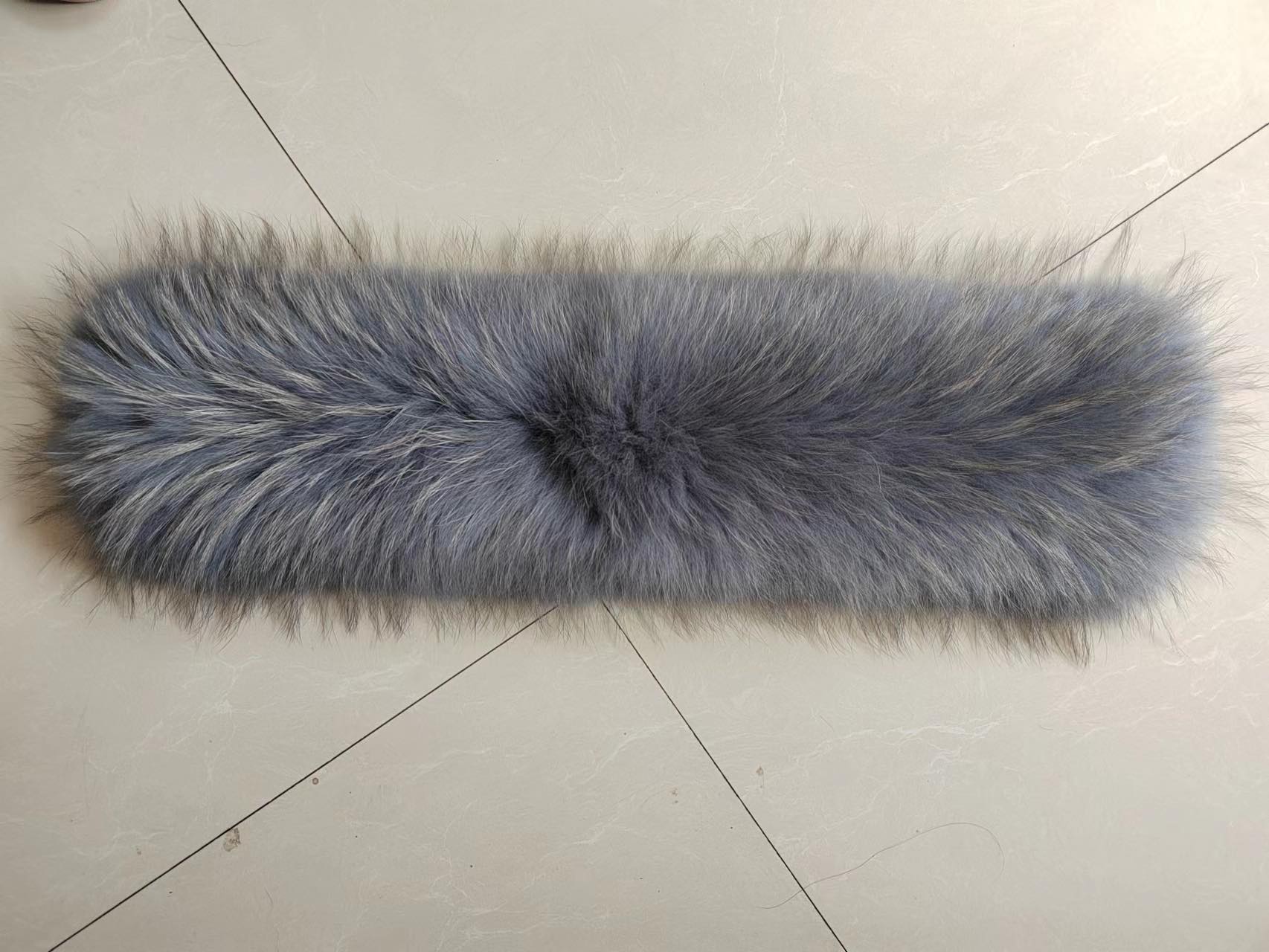 Obszycie do kaptura wykonane z futra jenota naturalnego, w odcieniu barwionym na kolor szary mieszany z grafitem i błękitem dłuższy jaśniejszy włos w odcieniu naturalnym , uszyty już na podszewce z pętelkami na guziki. Obszycie gotowe do przymocowania na kaptura. Aukcja dotyczy 60 cm x 22 cm