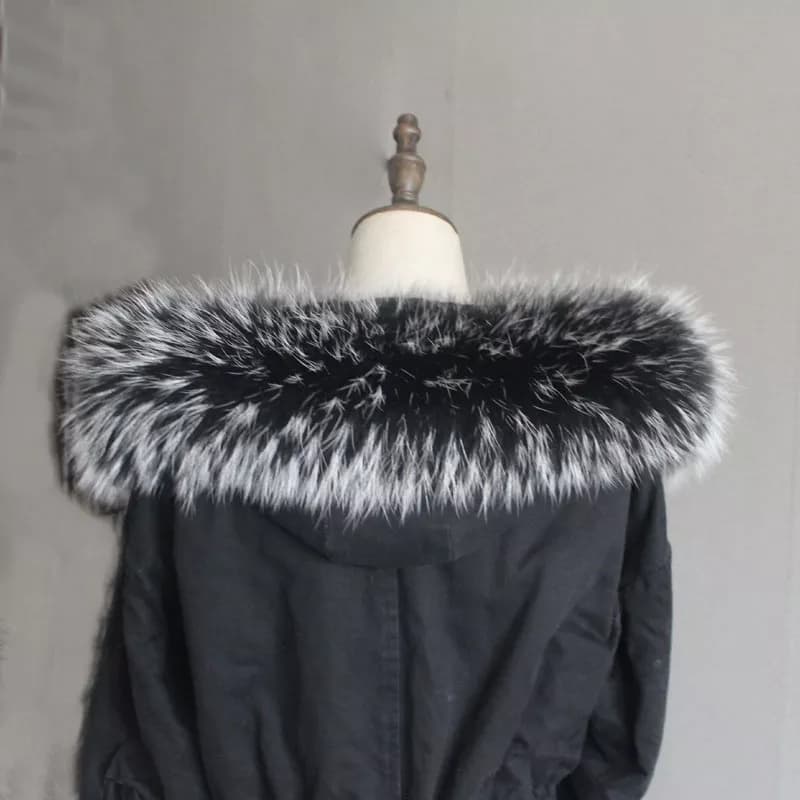 Obszycie do kaptura wykonane z najwyższej jakości naturalnego futra jenota naturalnego, obszycia są barwione na dowolny kolor, szyte z całości z grzbietów, czyli z najładniejszej partii skóry . Obszycie posiada gumowe pętelki na guziki, które doszywa się do kaptura ( nie są w zestawie ). Obszycie dodaje kurtce nowoczesnego i eleganckiego wyglądu. Obszycie od spodu jest wykończone satynową podszewką w kolorze jasnym lub czarnym .