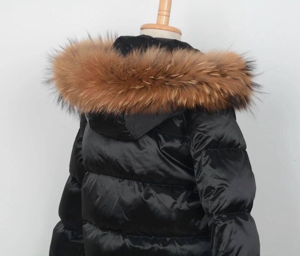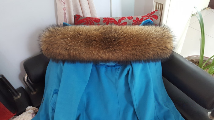 Obszycie do kaptura wykonane z najwyższej jakości naturalnego futra jenota naturalnego , szyte z całości z grzbietów, czyli z najładniejszej partii skóry . Obszycie posiada gumowe pętelki na guziki, które doszywa się do kaptura ( nie są w zestawie ). Obszycie dodaje kurtce nowoczesnego i eleganckiego wyglądu. Obszycie od spodu jest wykończone satynową podszewką w kolorze jasnym lub czarnym .