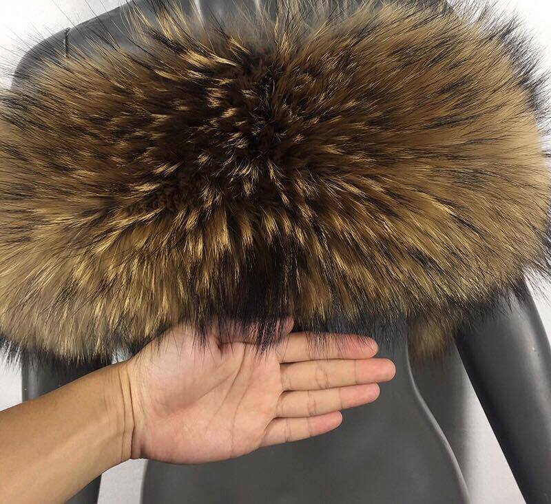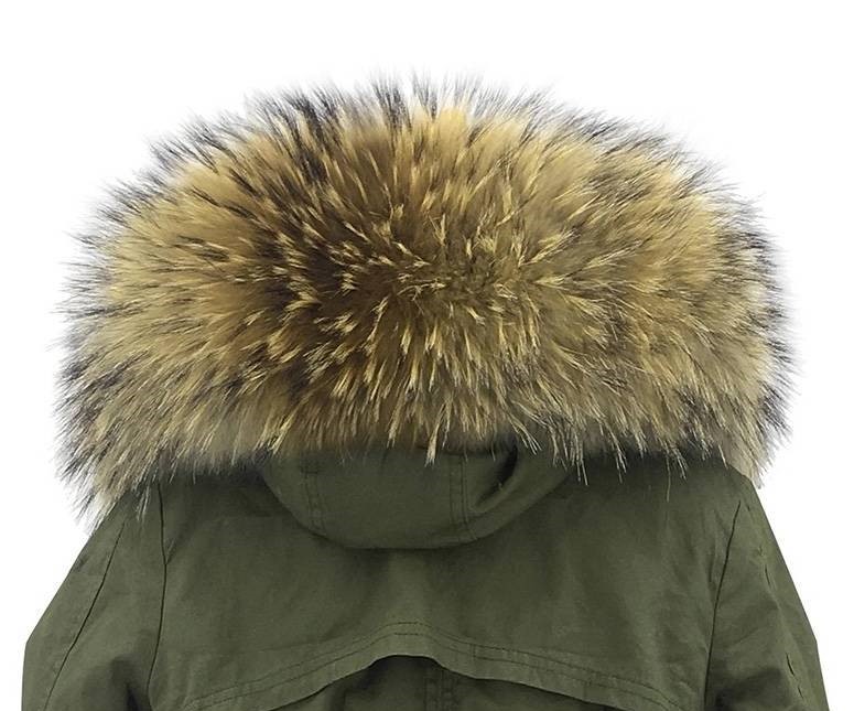 Obszycie do kaptura wykonane z najwyższej jakości naturalnego futra jenota naturalnego , szyte z całości z grzbietów, czyli z najładniejszej partii skóry . Obszycie posiada gumowe pętelki na guziki, które doszywa się do kaptura ( nie są w zestawie ). Obszycie dodaje kurtce nowoczesnego i eleganckiego wyglądu. Obszycie od spodu jest wykończone satynową podszewką w kolorze jasnym lub czarnym .