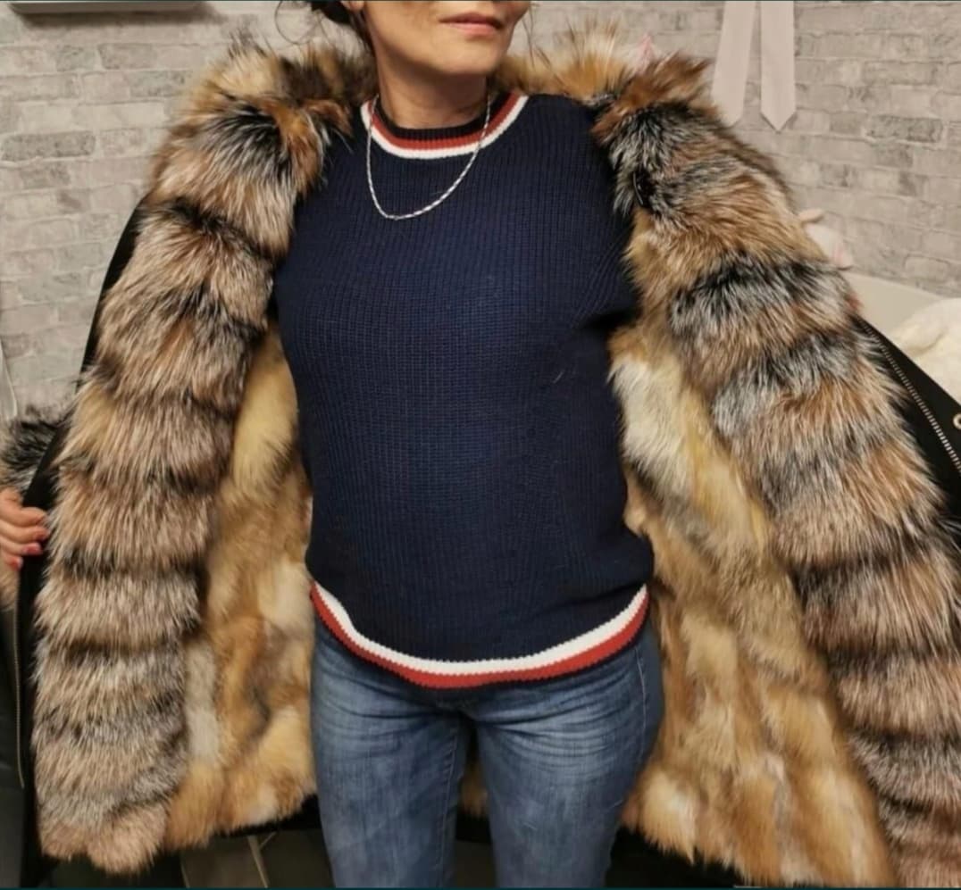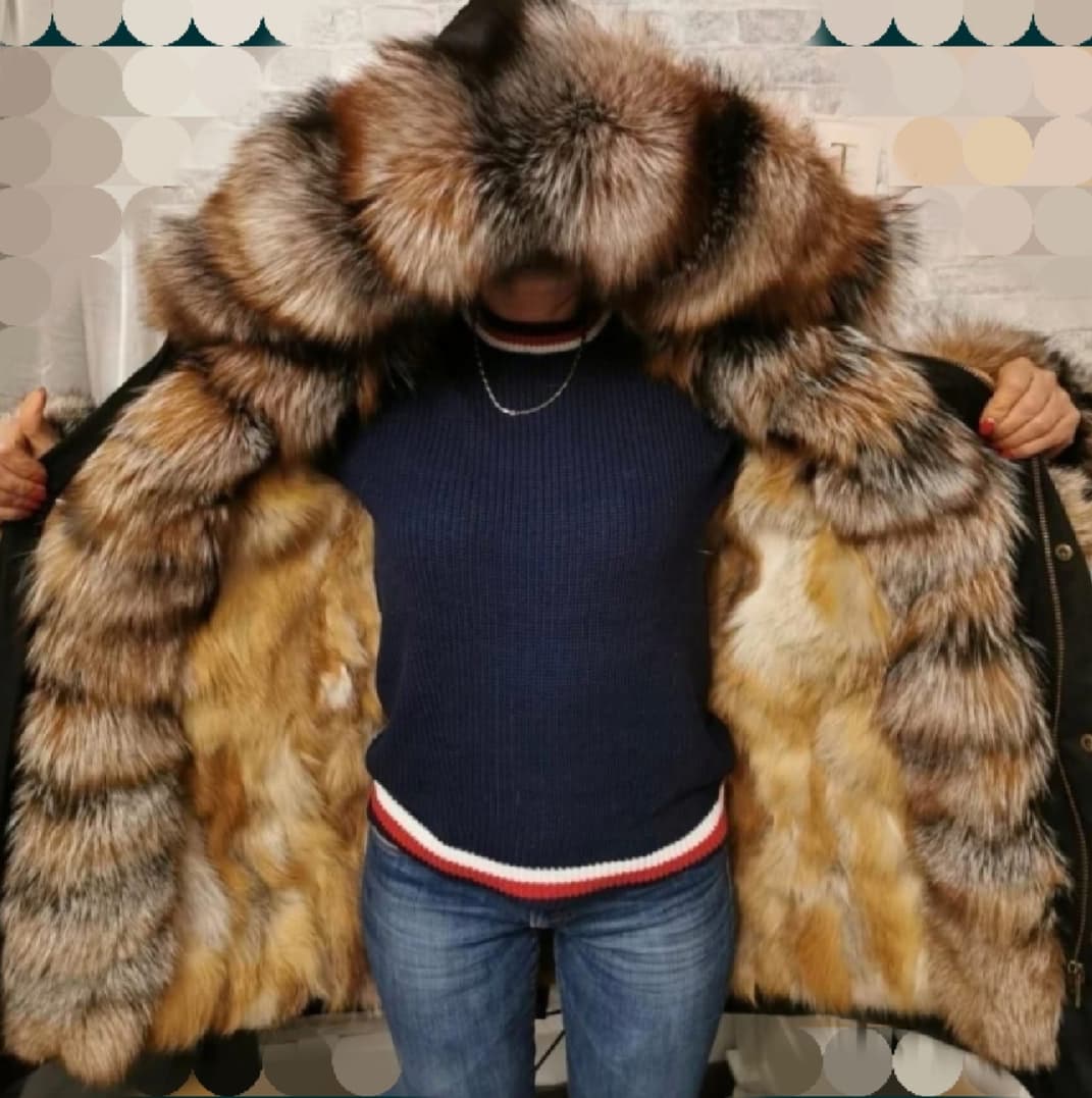 Kurtka damska typu parka w kolorze czarnym wykonana z najwyższej jakości materiału – nie przemakalna, odporna na wiatr oraz mróz do -20C. Od środka ocieplana naturalnym futrem lisa rudego. Kaptur, fronty oraz mankiety kurtki obszyte grzbietami lisa Gold Island Fox, które charakteryzuje piękny długi włos w naturalnych odcieniach. Bogate obszycie wspaniale komponuje się z całością kurtki i nadaje parce niepowtarzalnego szyku. Kurtka typu parka to nieodzowny element kobiecej garderoby, jest uniwersalna i ponadczasowa, pasująca do wielu stylizacji. Kurtka posiada 2 kieszenie zewnętrzne. Kaptur, fronty z podpinką oraz mankiety są wypinane.