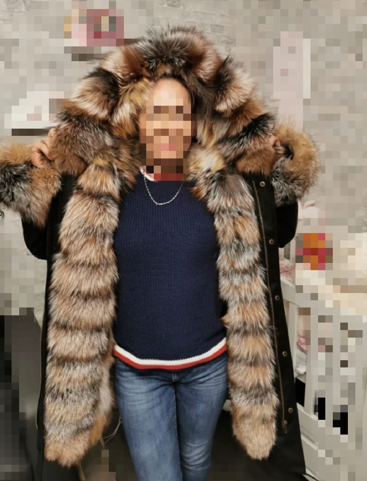 Długość rękawa od szwa -56 cm + 5 cm futrzany mankiet