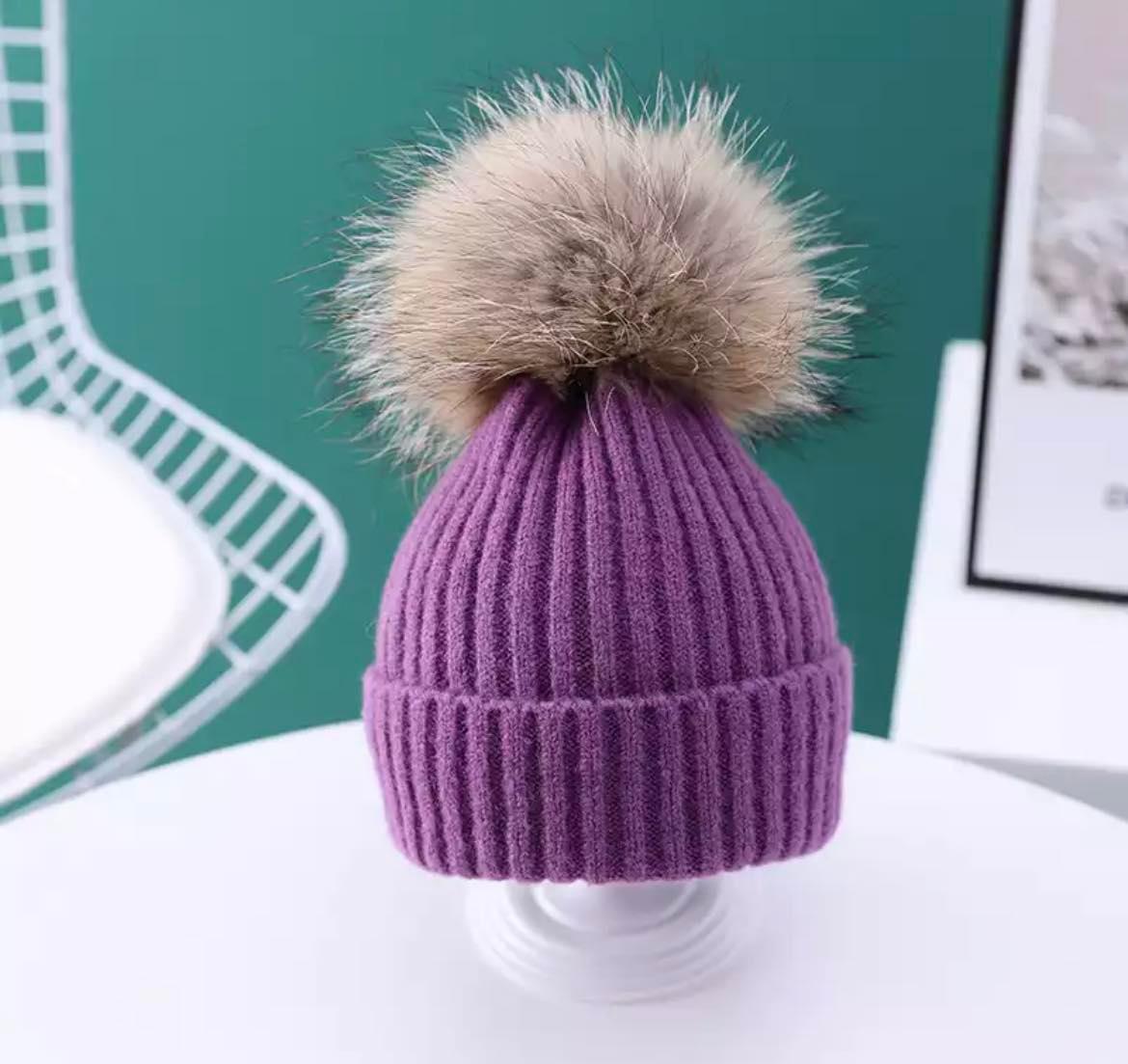 Zimowa czapka w prążki, z naturalnym obfitym pomponem z futra jenota. Duży pompon odpinany na zatrzask, co daje możliwość wyprania produktu ręcznie. Materiał czapki przyjemny i miękki w dotyku. Wzór uniwersalny. Czapka z wywinięciem
